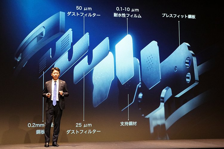 ハイレベルな防水性能を搭載。独自の16層の構造による防水設計とミクロ単位の防水フィルターによって、最大100mの水深に対応した。