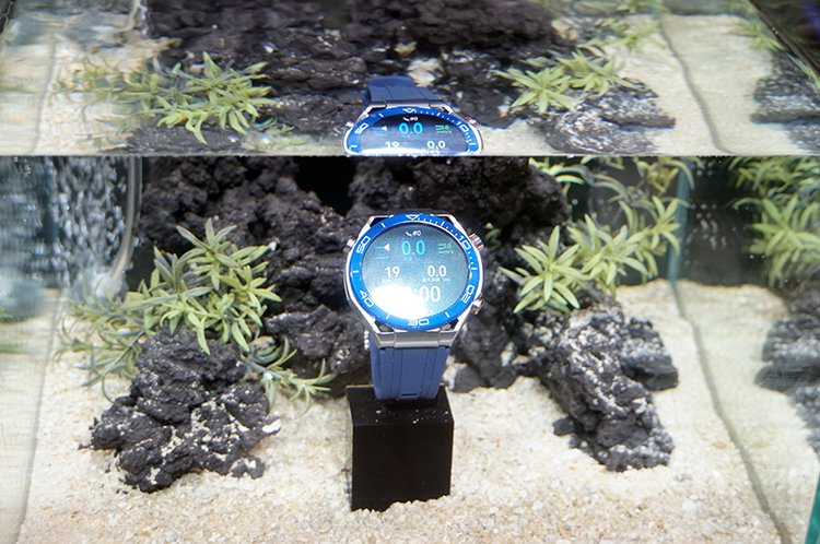 大きな特徴として、一般的なアナログ高級時計を意識した外観デザインと、最大100mの深海ダイビングにも対応する最新防水テクノロジーを採用する。