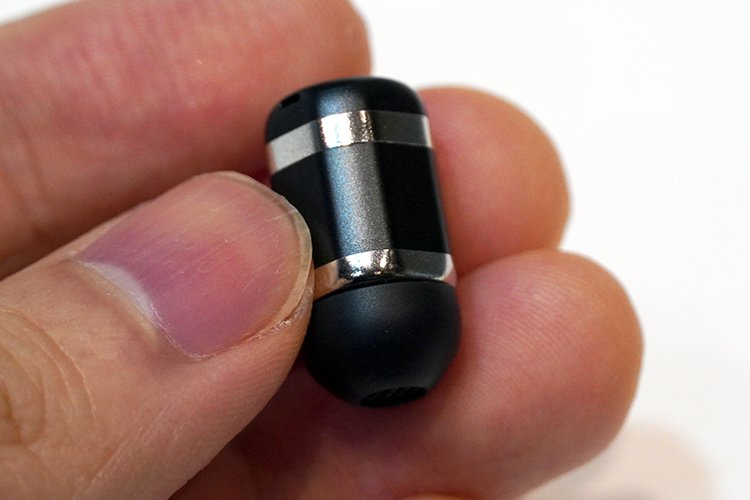イヤホンは片耳4gと小型軽量で、八角形の円柱型デザインを採用。柔らかなカット面で装着時の耳への負担も軽減でき、八角形とすることで小型ながらも、落とした際転がりにくいように配慮されている。