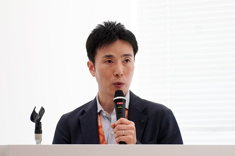 本日、日産自動車グローバル本社にて、「ポータブルバッテリー from LEAF」発売に関してのメディア向け発表会が開催された。まず冒頭に、日産自動車 コンバージョン&アクセサリー企画部 部長の若林 哲氏が登壇し、本製品の開発に至った背景や昨今のポータブル電源市場についてのプレゼンテーションが行われた。