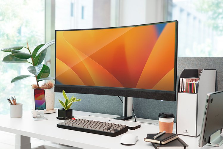 アスペクト比21:9の1500Rに湾曲した画面と、3,440×1,440(UWQHD)の高解像度を備えるVAパネルを搭載したクリエイター向けモニター。フルHDの約2.4倍となる表示・作業領域は、ビデオ編集、音楽編集、WEBデザインなど「同じ画面に様々なコンテンツやアプリケーションを同時に立ち上げて作業するユーザーに最適」とアピールする。