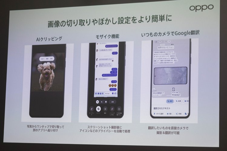 また被写体をワンタッチで切り抜けるクリッピング機能や、カメラアプリからGoogleレンズの翻訳機能にすばやくアクセスする機能、スクリーンショット時にプライバシーを保護するためのモザイク機能なども進化している。