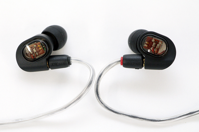 さらにシリーズのミドルクラス帯に位置する「ATH-E50」は、素直なサウンドがポイントとなるシングル・バランスドアーマチュア型(以下、BA型)ドライバーを積んでおり、よりコンパクトな筺体を用いて装着性を向上させ、DTM制作でのモニターだけでなく、ステージモニターとしてよりアクティブなシーンでの使用も想定したつくりとなっている。