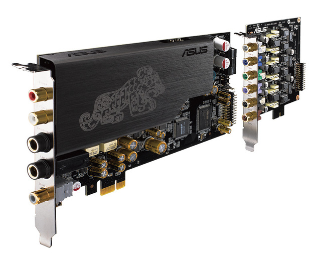 | ●ASUSが展開するサウンドカード サウンドカードとは、外部接続のUSB DACなどとは異なり、PC本体に組み込むことで、PCそのもののアナログ音声出力のクオリティを向上させることができるパーツだ。ヘッドフォンリスニングやアクティブスピーカーを接続したデスクトップ・オーディオを求めるユーザーにとっては、最もシンプルなシステムを構築できるメリットがある。音質面においても、サウンドカードに搭載されるDAC部などはPC標準のものに比べ遥かに高品位で、ASUSならではの優れたサウンドを実現できる。(編集部) |