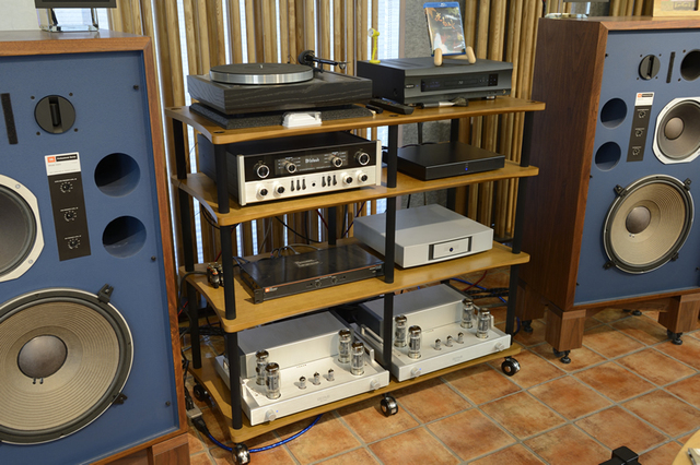 まずは写真をご覧いただきたい。JBLの4344とB&Oのスピーカー、マッキンのプリアンプにオクターヴのパワーアンプ、再生系はLINNのアナログプレーヤー「MAJIK LP12」とネットワークプレーヤーが設置されている。