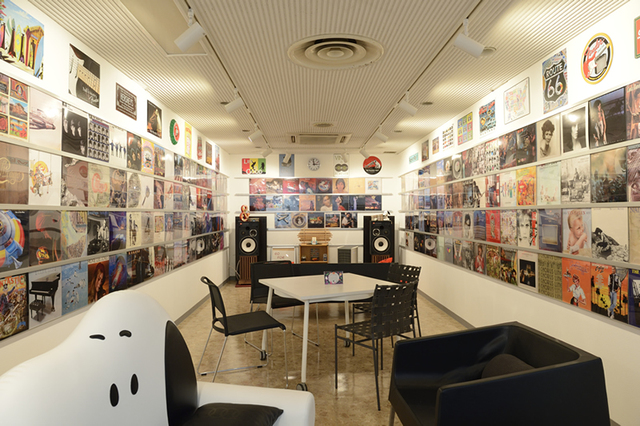 同店のメインスペースは建物の2階にあるのだが、1階にもアナログレコードが堪能できるギャラリーがあり、ここにはその当時から集めているという70年代から80年代のロックやポップスのLPジャケットがきれいにディスプレイされている。ここでもTさんが体験してきた音楽の歴史を感じ取ることができるのだ。