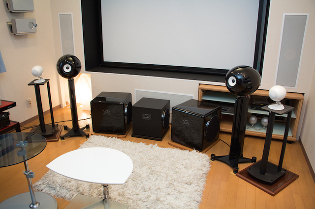 ホームシアターに導入するにあたっては、スタイリッシュなデザインや天吊りもできる適度なサイズ感と共に、設置性能の高さも重要だという。その点でECLIPSEのスピーカーは、そもそも天上や壁に設置できるようにスタンドがデザインされている。角度のスタンド部で容易に行える。また、一般的なスピーカーを天吊りするとなると、色合いやデザインの異なる金具を用いなければならない場合があり、それでは不格好だ。