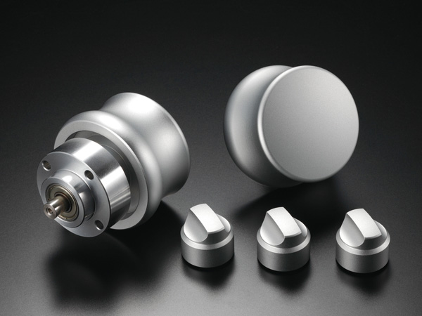 ここに新たに加わる「F-07」は100W+100W(8Ω)のABクラスで、F-05直系の弟機だ。パネルやシャーシのサイズは変わらない。LR独立のフルバランス構成など、回路基板を含むパーツ類も極力共通化され、操作フィーリングも共通で、入力セレクターにしてもボリュームコントロールにしても「Grandioso C1」で開発した芯ブレのないベアリング機構や、アルミの無垢材から削り出したノブなどもほぼ共通である。つまり、下位モデルほど実はC/Pが高いということになりそうである。