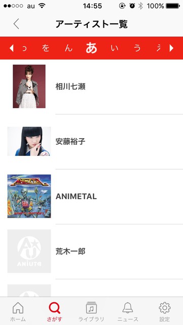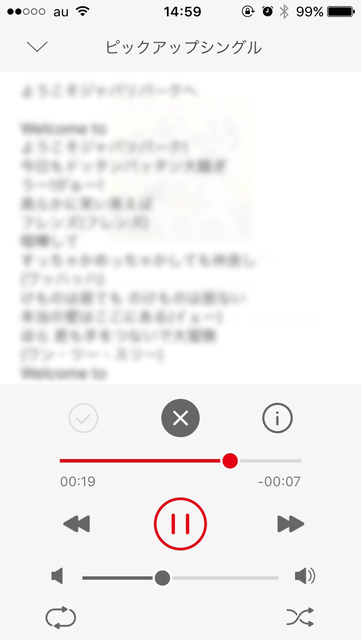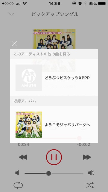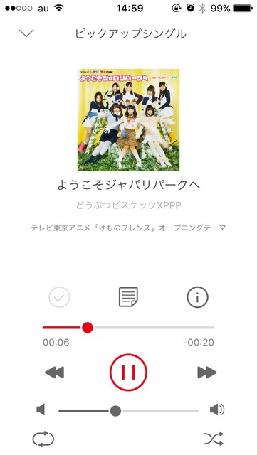 ただしジャケットの表示が小さく、全画面表示のような機能も用意されていないようだ。表示される情報量を考えると仕方ない部分はあるが、個人的にはアニソンならジャケットの表示サイズは重要だと感じる。(アップデートによりサイズが大きくなりました)