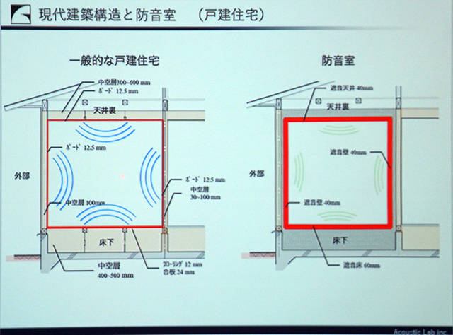 同社代表の鈴木氏は「建物によって構造が違って音の響き方も違う。では、オーディオルームを作る際にはどうしたらよいのかを考えようというのが今回の趣旨だ」と説明した。