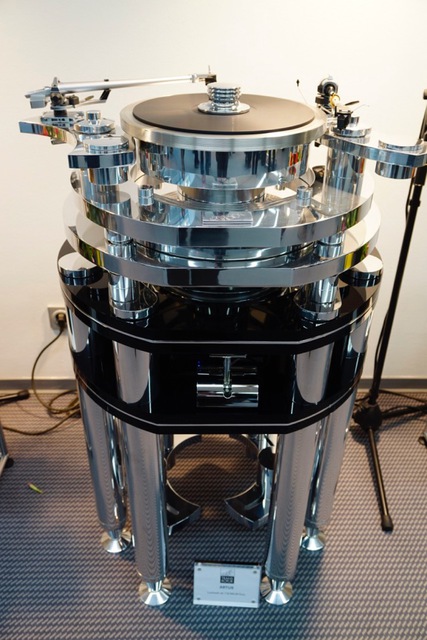 そんななか、技術的に先鋭なアプローチにチャレンジしている日本メーカーの存在感が今年はひときわ目を引いた。ターンテーブルの場合、欧州メーカーは分厚いアクリルまたは金属製の重量級プラッターで慣性質量を高める手法が中心を占め、駆動方式やサスペンションにまで目を向けている例はそれほど多くない。それだけにエアサスペンションや吸着システムを突き詰めたTechDAS(テクダス)のアプローチはドイツでも年々注目が高まっているのだが、今年は同社が開発中のAirForce ZEROの基幹技術から一部を公開して、再び旋風を巻き起こした。