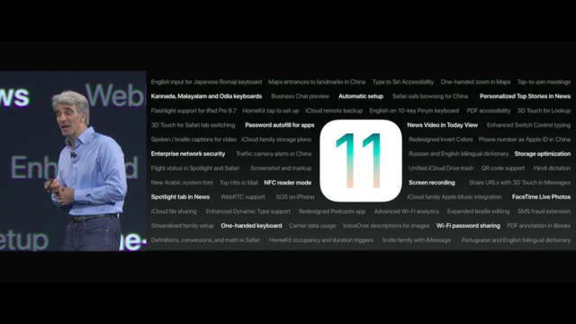 HEVCは、iOS 9のときから部分的にサポートされているが、iPhone 6/6 Plus以降の端末でFaceTime Video(ビデオ通話)に使われていた程度。iOS 11では、純正のカメラアプリがHEVCをサポート、静止画像にも活用される。後述するが、品質を低下させることなく写真と動画のサイズを半減できるという基調講演での言葉は、このHEVCをサポートする効果によるものだ。