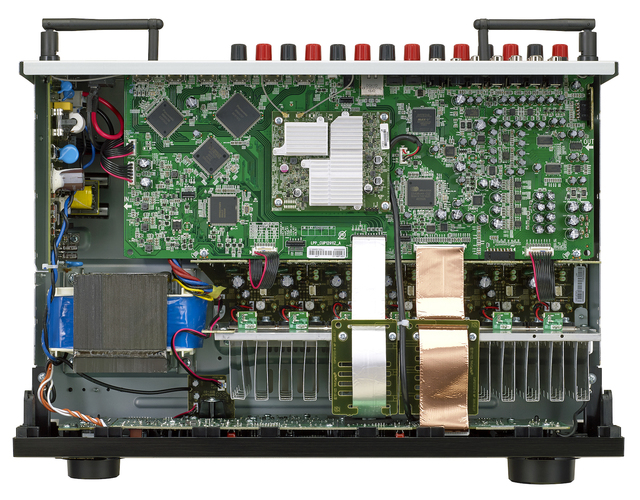 もう1つの大きな変化は、プリアンプ/ボリューム回路の刷新。Hi-Fiアンプ設計思想を踏襲し、入力セレクター、ボリューム、出力セレクターの各機能を分離してレイアウトを最適化した。特にボリュームICは、JRC(新日本無線)とデノンがAVR-X6300Hなど上位機用に共同開発したカスタム品を利用するなど、特性の改善も見逃せない。