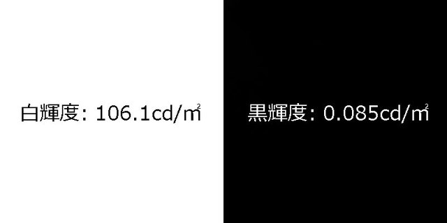 画面の最大輝度(白100%)は495.0cd/m2。XperiaXZの592.6cd/m2を下回るが、4Kパネルは原理上、開口率が低くなってしまう。そうしたハンデを背負いながらも、高水準を維持していると捉えるべきだろう。コントラスト比は実用に近い条件として、白100%表示時の輝度を100cd/m2付近に調整した後、「白輝度」と「黒輝度」を測定して算出した。