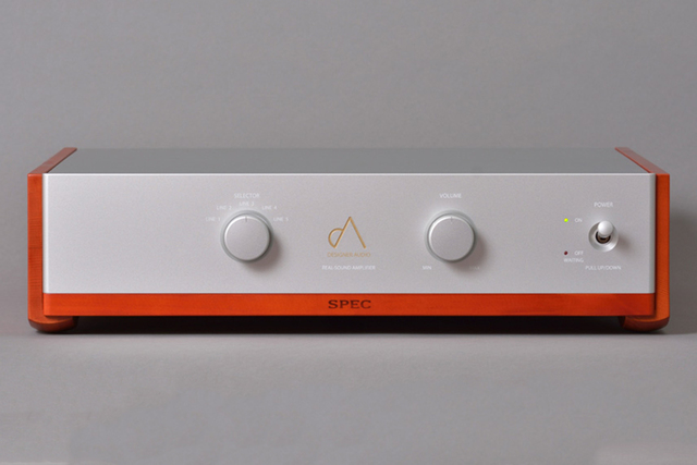 RSA-G1は、RPA-W5STをフルサイズのプリメインアンプ化させたもので、サイドパネルとボトムパネルに、それぞれカエデとスプルースというウッドを使用している。SPEC独特の楽器的なアンプチューニングである。