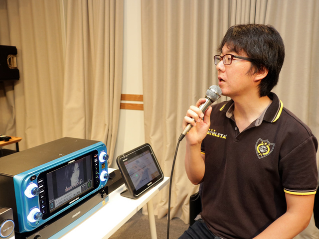 ニュースで紹介した「ハイレゾ化によって応答が速くなる」という説明は、この遅延の小ささのことを指しているようだ。実際、これまでの「JOYSOUND MAX」に比べ、新機種の「JOYSOUND MAX 2」では遅延が約4分の1になっているとのことだ。つまりそれだけ速く声が返ってくることになる。