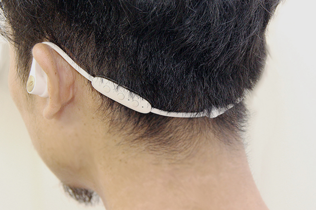 それでは実際にiPhone 7とペアリングをして音楽リスニングを始めてみよう。まずは装着し、路上で音楽リスニングを試みた。