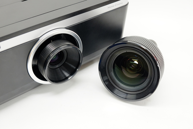 実際の使用シーンにおいては重要な設置性だが、コンパクトなボディーながらレンズ交換(別売/受注生産)が可能で、100インチ時の投写距離は最短1.7m〜最長11.1m(付属の標準レンズは3.4m〜4.3m)と設置場所を選ばない柔軟性も特徴だ。