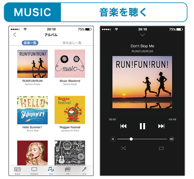 音楽の宅外ストリーミング機能も注目すべき新機能。ディーガは従前モデルから、CDリッピングとNAS機能を備え、ミュージックサーバーとして利用できるが、新モデルでは宅外からもアプリ「どこでもディーガ」を用いて再生可能になる。スマホの限られた記憶容量が、音楽データで逼迫しているユーザーに朗報と言えるだろう。