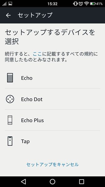 初期設定および各種設定変更は、このAlexaアプリで行う。まず自分のAmazonアカウントとパスワードを入力し、ガイダンスに従ってEchoをWi-Fiに接続。スマホと同じWi-Fiネットワーク下にEchoがあれば、ひとまずEchoを使える状態になる。ガイダンスに沿っていけばそれほど迷うことはないだろう。