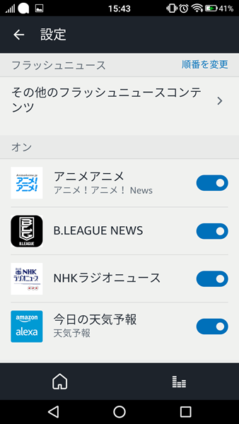ちなみに、ニュースは各社スキルの優先順位をアプリから自分で選択する必要がある(※デフォルトでは新しく追加したものが最優先される)。例えば「NHKラジオニュース」「TBSラジオニュース」「アニメ!アニメ!ニュース」という順番でニューススキルを並べた場合、「アレクサ、今日のニュースは?」と呼びかけた際にNHK、TBS、アニメアニメといったように、順番に各サービスのニュースが読み上げられる。