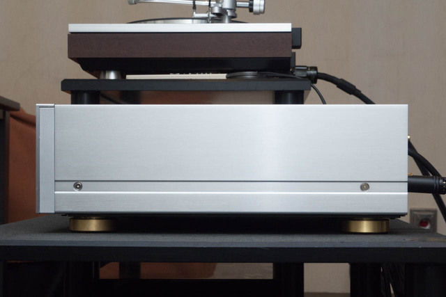 天板を外して内部を見ると、シャーシは2重構造。高剛性の筐体を高比重真鍮製インシュレーターを足元から支える、リジッドアンダーべースを採用した。これはいわばパイオニアのお家芸、質量は19.6kgに達する。
