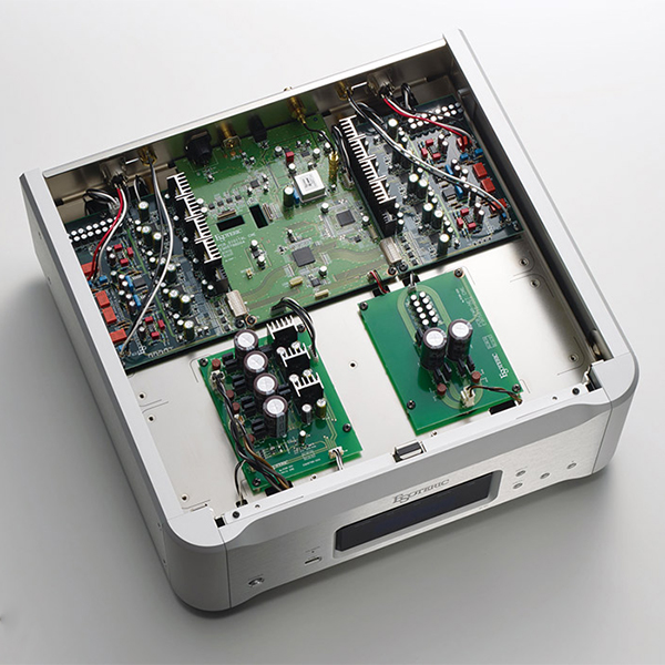 左右独立のDAC回路やデジタル回路だけでなく、ネットワークモジュールにも専用電源を用意し、合計四つの大容量トロイダルトランスを搭載するなど、オーディオ機器としての徹底的な作り込みと物量投入が成されている。あくまでネットワークオーディオプレーヤーとして発売された機器で、贅を尽くした強靭な筐体も含めて本機と同じレベルの物量投入がされたものとなると、電源別筐体ではあるもののスフォルツァートの「DSP-01」くらいしか思い浮かばない。