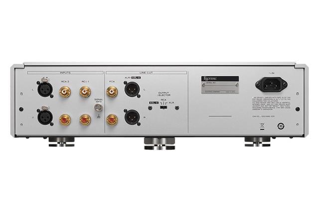 一連のエソテリック製アンプでお馴染み、曲面カッティングによる優美なフロントパネルを備えた高剛性の筐体を纏い、前面に備わった大型ノブもアルミニウム無垢材からの削り出しだ。電源部はRコアトランスから左右独立という十分な容量である。