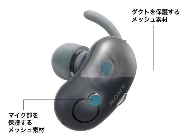 エクササイズといえば、ノイズを軽減し運動に集中できるのも、本機ならではの魅力だ。さらにスポーツ向けイヤホンとして、汗や水しぶき、雨などからヘッドホンを守る防滴仕様「IPX4」相当までカバー(※イヤホン本体のみ。ケースは非防滴仕様)しているのもポイントだ。これらを実現するため、イヤホンのハウジングの設計についても、さまざまな創意工夫が詰まっているという。