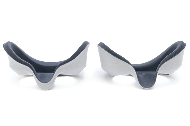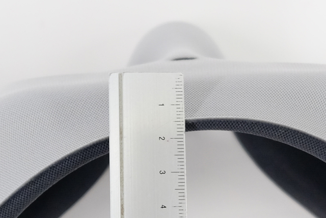 また触ってみると、ところどころ内部のクッションの厚みが違う。定規で図ってみると、通常のフェイスカバーの上部分の厚み(奥行き)が約2.0cmなのに対し、Fitted Interfaceは約2.5cm程度あった。通常のものがヘタった可能性も否定できないが、それにしても形状に違いがある。