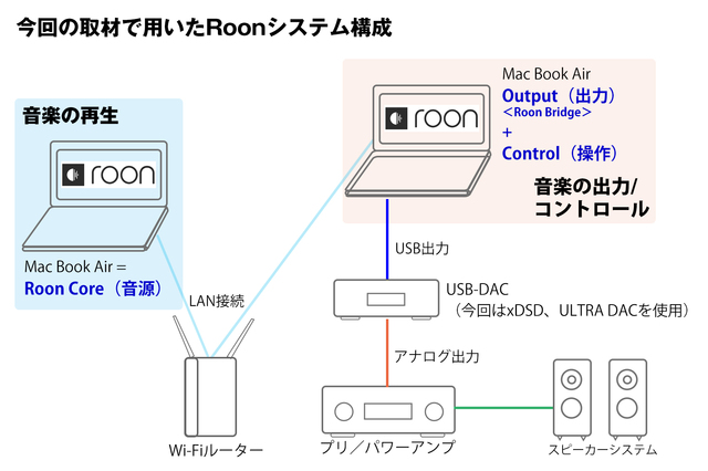 今回はRoonのMQA対応のテストをするために、次の機材を使用した。