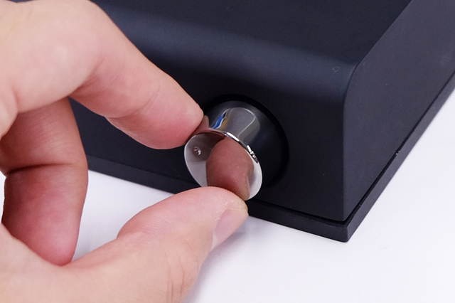 入力はアナログのみで、RCAアンバランスとXLRバランスを1系統ずつ装備。背面側に用意されたスライドスイッチでRCAかXLRを選択する。ヘッドホン出力はフロント左側に設けられており、3.5mmステレオミニ端子と6.3mmステレオ標準端子を1系統ずつ用意。この両出力を同時に使うことも可能だ。オープン型ハイエンド機に多い標準端子と、ポータブル機に多いミニ端子を自在に選択できる点はデスクトップ機として大事な要素といえるだろう。対応インピーダンスは16Ωから600Ωまでと、現在の主要なヘッドホンに対応できる仕様となっている。