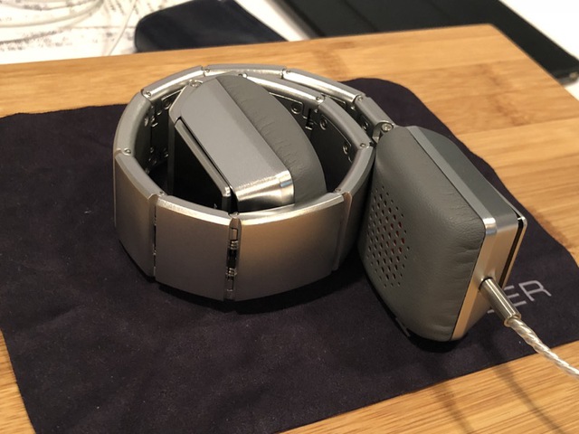 高級腕時計の金属バンドを思わせる構造でヘッドバンドからイヤーカップまでを美しく一体化。その構造の秀逸さだけではなく、スイスでのハンドメイド生産とのことで実物の製造クオリティも素晴らしい。