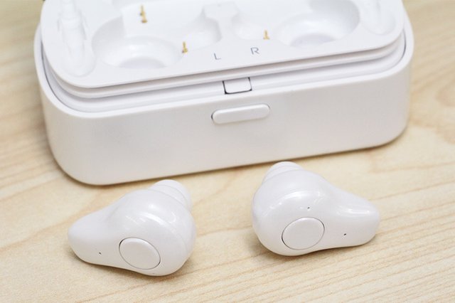 ケースはフタ部分がクリア素材となっており、製品の一部というよりは化粧ケースのような雰囲気。少し安っぽく見えることは否めない。また完全ワイヤレスイヤホンのケースとしてはやや大柄な部類でもある。……のだが、このケースにはひとつ大きなポイントがある。そこは後で説明していく。