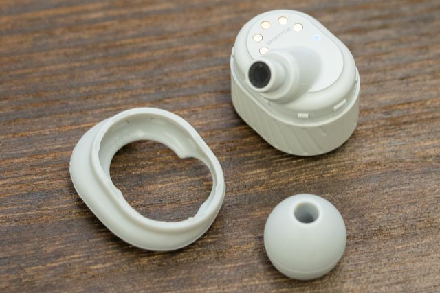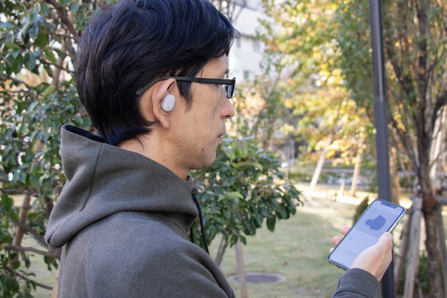 本体のタッチセンサー、または後述する専用アプリから機能のオン/オフ、ならびに外音取り込みの強度が選べる。屋外でのランニング、あるいは歩きながら音楽を聴くときにも周囲の安全に気を配れる便利な機能だ。それだけでなくスポーツジムなど屋内で体を動かす時にも、トレーニング器具の動作音が聞こえる状態の方が安心感が増すと思う。周囲の人にぶつかったりして迷惑をかける心配も減るので、トレーニングにますます身が入るだろう。
