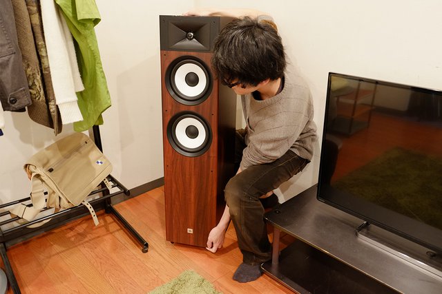 ゴム足とスパイクの両方が付属するため、床を傷つける心配もない。賃貸でも安心だ。ブックシェルフ型モデルは、状況が難しそうであればテレビラックやシェルフに置いても良いと思うが、可能であれば耳の高さに合わせたい。スピーカースタンドがベストだが、とにかく同じ高さにすることが大事だ。