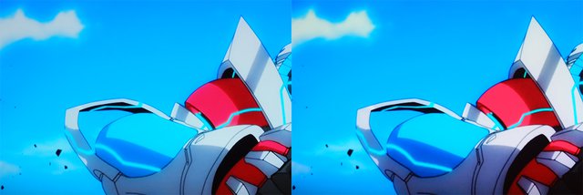 アニメでは「超解像」の項目の変化が分かりやすい。0〜15段階で設定できるが、この数値が高いほど線がくっきりとしてくる。ただその一方で、あまり高くしすぎても逆に背景の細部が崩壊したりもするので、「シャープネス」とのバランスを取りながら0〜7前後にしておくと良いように思う。