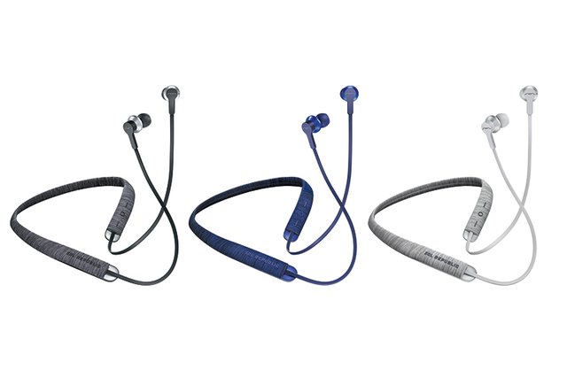 特徴はやはりネックバンド表面の素材だろう。100%ポリエステル製のフレックニット・ファブリックがネックバンドの先端部の内側を除く箇所全てを覆っている。手に触れると見た目通り布生地らしい質感が感じられ、見た目にも触り心地にも、ガジェット系のイヤホンとは一線を画する上質さを備えている。本体カラーにはブラック、ブルー、グレーの3色をラインナップしている。