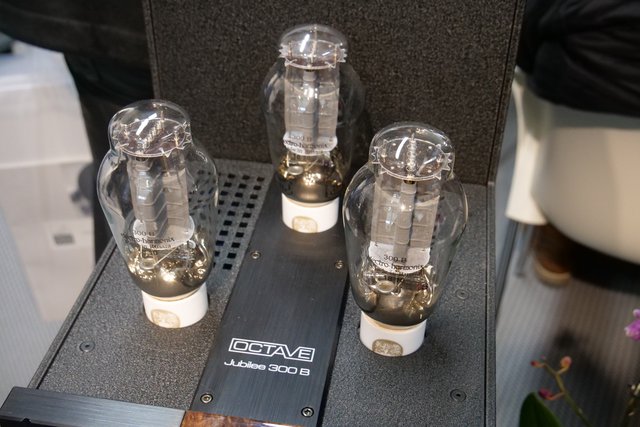 300BのメーカーはElectro Harmonix(EH)とJJから選択できる。Hoffmannはそれぞれに良さがあると説明してくれたが、筆者が声のなめらかさに感心したモデルはEHの300Bを使っていた。Jubilee 300Bはペア600万円前後のフラグシップ機であり、ターンテーブルはクリアオーディオの「Master Innovation」を組み合わせていたので、総額は1000万円を軽く超える。贅沢なシステムではあるが、そこまで投資してもこれほどスムーズな音には到達しないのが普通なので、やはり特別感は半端ではない。