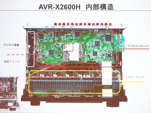 今回視聴の機会を得たのは、2機種のうち上位の「AVR-X2600H」である。アナログ構成の7chパワーアンプを内蔵し、定格出力は95W/ch(8Ω、20Hz〜20kHz THD:0.008%)。アンプの基礎部分には、きめ細かく多岐にわたる改良の手が加えられた。そのほとんどが上位機種AVC-X8500H、AVC-X6500Hで実証済の技術やパーツである。