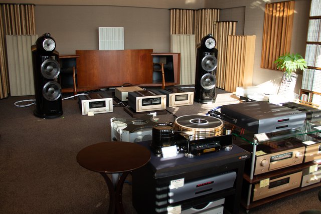 さらにその奥には、売り場とは独立した試聴ルーム、通称「EXルーム」も用意されている。この試聴ルームには、アナログからデジタルまで、今話題のハイエンドオーディオ製品が取りそろえられている。一方でインテリアにも気を使った瀟洒な内装、壁一面のアナログレコードなど、文化的な香りも漂う。ちなみに。EXルームとは別に、ホームシアター専用室も備えている。
