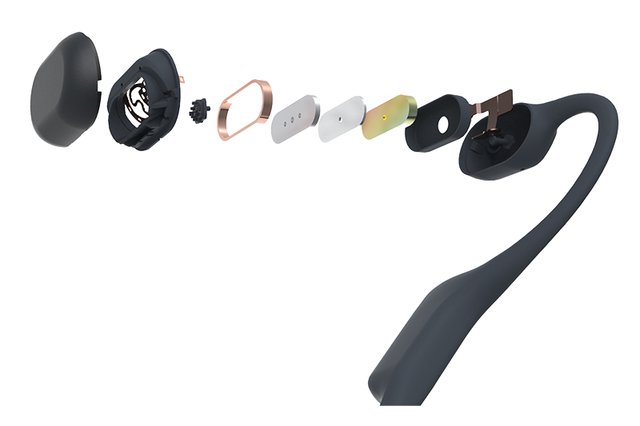 皮膚に接する部分に内蔵されたトランスデューサー(特許取得済)が、頬骨を伝わる微弱な振動を生み、それが鼓膜を迂回して内耳に移動することで音として認識される仕組みは同様だが、内部構造を見直すことで、より歪みの少ないサウンドを実現した。さらに前世代のAfterShokz Airに比べ、30%の小型化と15%の軽量化を実現し、さらにスポーツ向けに最適化されている。