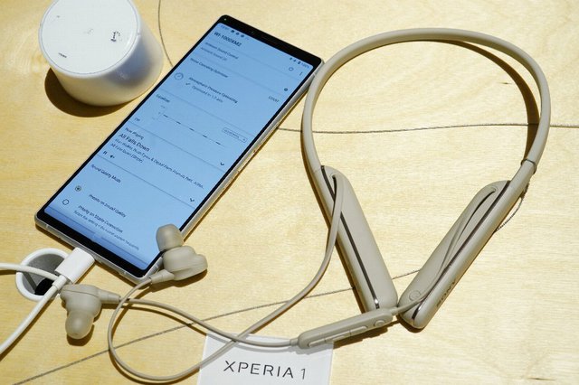 会場では同時に発表された新スマホ「Xperia 5」とワイヤレス接続した状態で出展されていたので、そのまま音質チェックを試みた。
