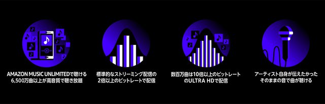 それに対して今回のAmazon Music HDは、44.1kHz/16bitの「High Definition:HD音質」に加え、最大192kHz/24bitの「Ultra High Definition:Ultra HD音質」のロスレス配信を聴き放題で楽しむことが可能である。