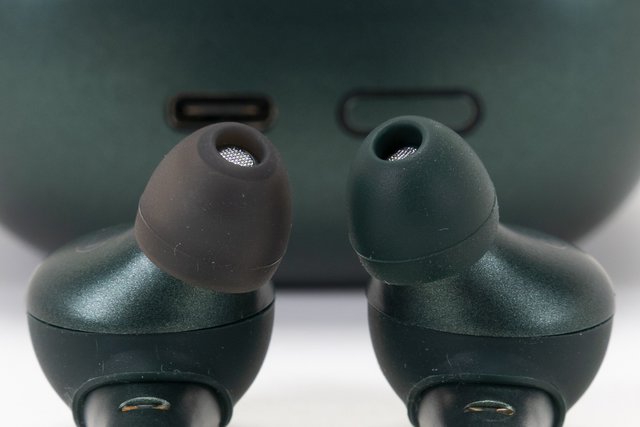 加えて、イヤーピース周りでも装着感をさらに高めてきているのだから万全だ。楕円形状で耳へのフィットを向上させてある上に、耳への挿入の深さが異なるふたつのタイプが付属。前述のように装着の安定性は本体だけでも十分に確保されているので、こちらは固定力よりも耳に入れたときの違和感がより少ない、装着感重視で選ぶのもありかもしれない。
