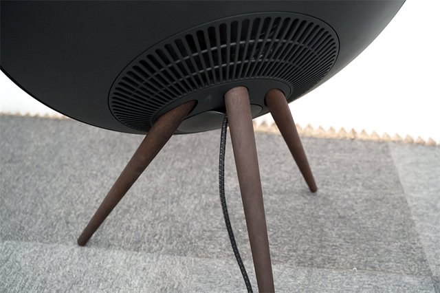 三本足のスタンドにも良質な木材を贅沢に使っており、本体カラーに合わせて材質を使い分けているのもポイント。また本体を覆うファブリックカバーは、別売で高級テキスタイルメーカーKvadrat社とのコラボレーションによるものも用意される。