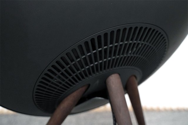 大きさは「折りたたみ傘よりひと回り小さな直径」とでも言えば伝わりやすいだろうか。ワイヤレススピーカーとしては大柄。しかし優れたデザイン、落ち着いた色合いのおかげか、実際に部屋に置くとさほどの圧迫感は感じられない。前述のようにインテリアに溶け込んでくれるのだ。