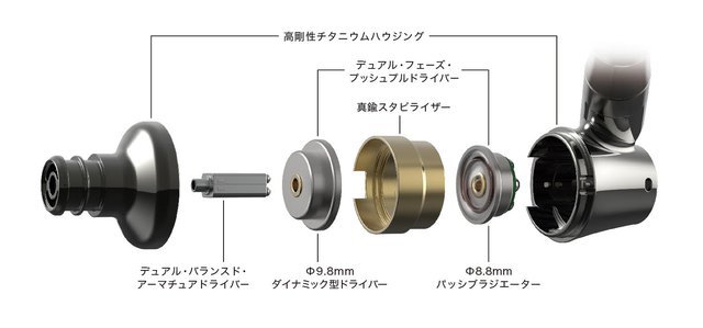 そして前方のBA型ドライバーからデュアルフェーズ・プッシュプルドライバーまで、同一軸で揃えた同軸配置とすることで、音像定位の面でもナチュラルな空間表現を可能としている。