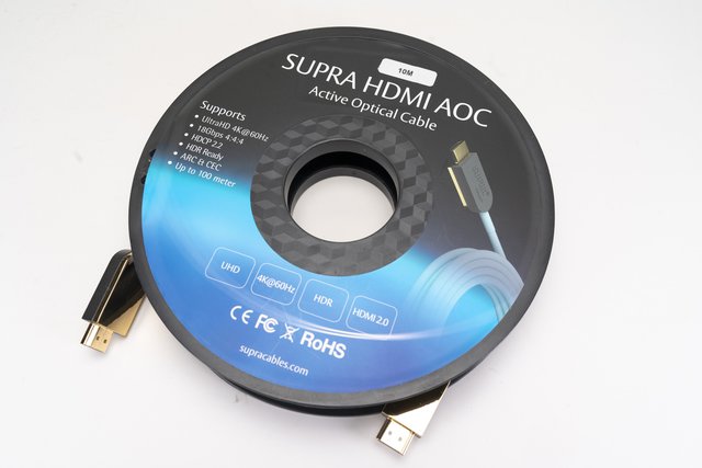 SUPRA HDMI 2.0 AOCのコンセプトは、伝送速度や通信帯域などの厳しい条件をクリアして、長尺ケーブルとして4Kコンテンツの伝送に対応する事だ。それを実現するため、上述の通り光ファイバーケーブルによる光伝送を採用している。