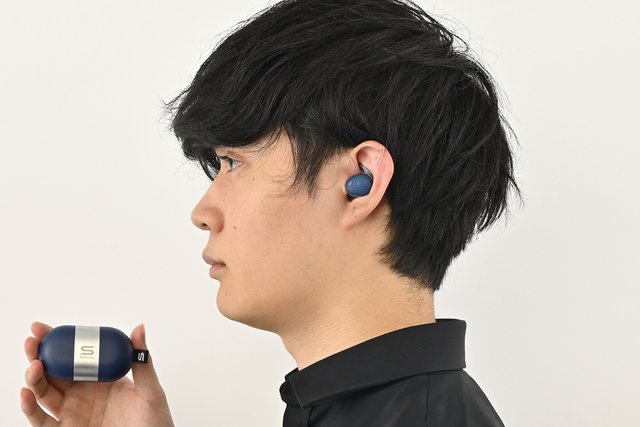 特に手に取った瞬間、完全ワイヤレスイヤホン選びで期待する“コンパクトさ”に誰もが驚くだろう。指先に乗るほど小さい充電ケースと、小耳でもフィットする小型軽量のイヤホン本体は男女問わず使える大きさだ。